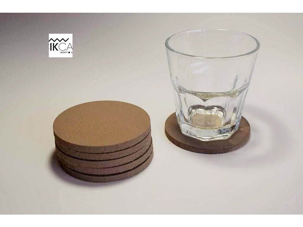 Přírodní stylové podtácky vyrobené z recyklovatelného materiálu o průměru 80 mm a výšce 6 mm.
